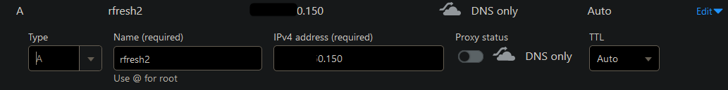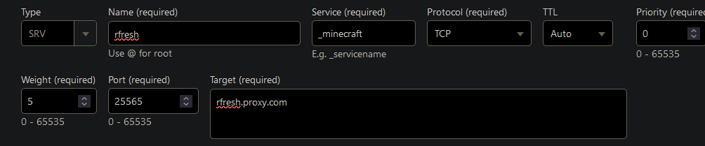 An SRV record for _minecraft._tcp with the port and the A record as its target.
